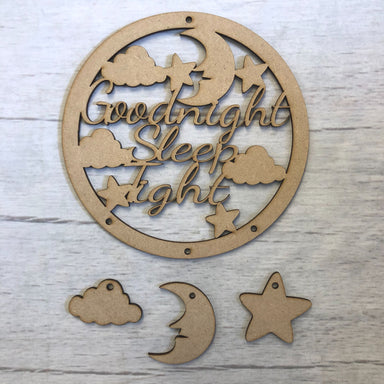 Goodnight Sleep Tight dream catcher.Laser cut dream catcher showing Moon, Clouds, Stars and the sentiment 'Goodnight Sleep Tight' These dream catch...
