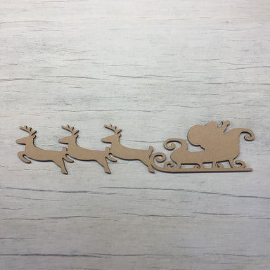 Beautifully laser cut plaque showing Santas sleigh being pulled by three Reindeer.This plaque is approximately 70cm x 15cm.Please select the thickn...