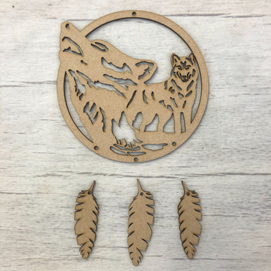 Wolves dream catcher.Laser cut dream catcher showing an illustration of Wolves.These dream catchers are left unpainted and look lovely as they are ...