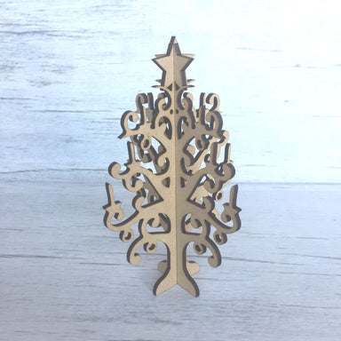 Beautifully laser cut festive freestanding tree in the shape of an elegant curly Christmas tree.This is a two part that slots together nice and snu...