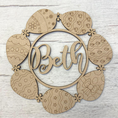 Personalised Easter Hoop that can be customised with your choice of name, with Easter Eggs around the outsideYou are able to request multiple words...