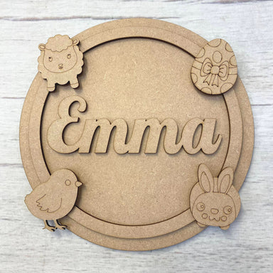 Personalised Hoop Plaque that can be customised with your choice of name, these are decorated with Easter animalsYou are able to request multiple w...