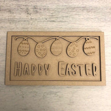 Happy Easter Plaque with 'Happy Easter' and sting of Easter EggsLaser cut from 3mm MDF.30 x 17.5cm.Different sizes can be available in this design,...