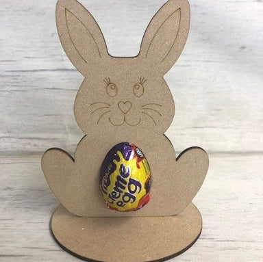 Easter bunny with hole for Cream Egg on StandThe bunny has a lovely cheeky detailed faceThese are made from 3mm MDF, and are 15cm tall. The base is...