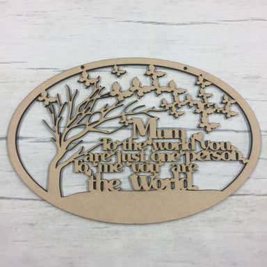 Beautifully laser cut hanging plaque, with precision laser cut sentiment within.Plaque reads 'Mum to the world you are just one person, to me you a...