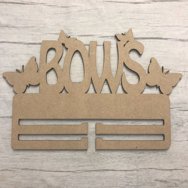 Beautifully laser cut Bow Hanger with butterfliesThese are easy to paint or decorateApprox 30cm wide x 20cm high4mm thicknessIf you need this shap...