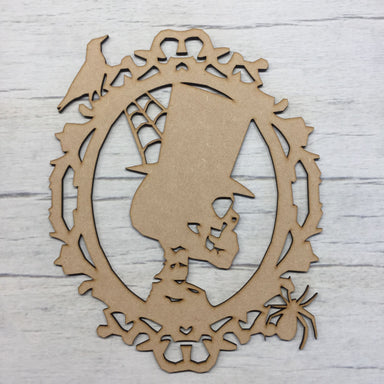 This spooky large sized Halloween plaque is great fun and looks amazing!This detailed laser cut plaque shows a skull in a top hat, with a spider a...