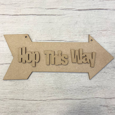Easter Sign 4 with seperate words 'Hop This Way'Laser cut from 3mm MDF.30cm x 12.5cmDifferent sizes can be available in this design, contact us for...