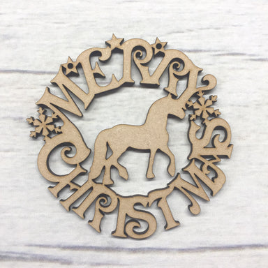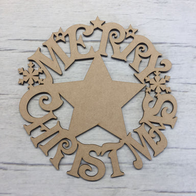 Beautifully laser cut festive plaque in the shape of a Christmas wreath made up from the words, 'Merry Christmas' Cut from 4mm MDF,25cm tall.Perfec...