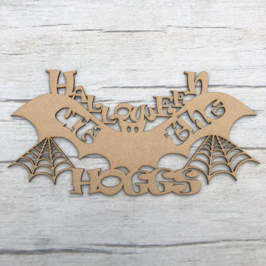 Customised Halloween hanging wall plaque showing a bat with spooky cobwebs!Made from laser cut 4mm MDF and left blank for you to decorate, or leav...