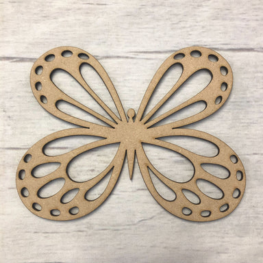 Beautifully detailed butterfly hanging plaque.Precision laser cut from 4mm MDF.30cm wide, 26cm tall. Includes the sentiment 'Live every moment, Lau...
