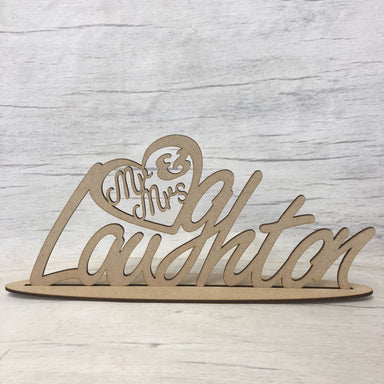 Mrs & Mrs Plaque with base to make freestandingStands 12.5 cm high x 30cm wideCut in 4mm MDF Perfect for painting, decorating, or crafting. Mad...