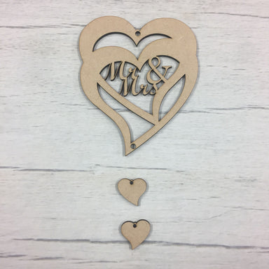 Beautifully laser cut hanging plaque, with precision laser cut 'Mr & Mrs' sentiment within the main body of the hearts.This is 'Mr & Mrs' s...
