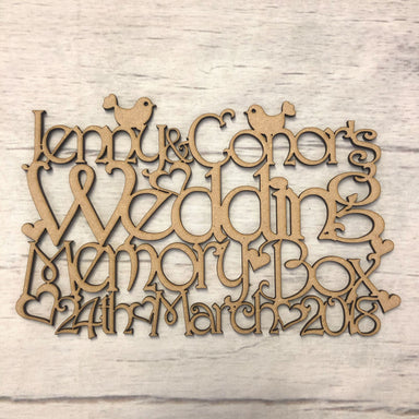 This is a beautifully laser cut personalised memory box topper.This customised plaque shows a pretty design of hearts and Lovebirds. Each one is in...